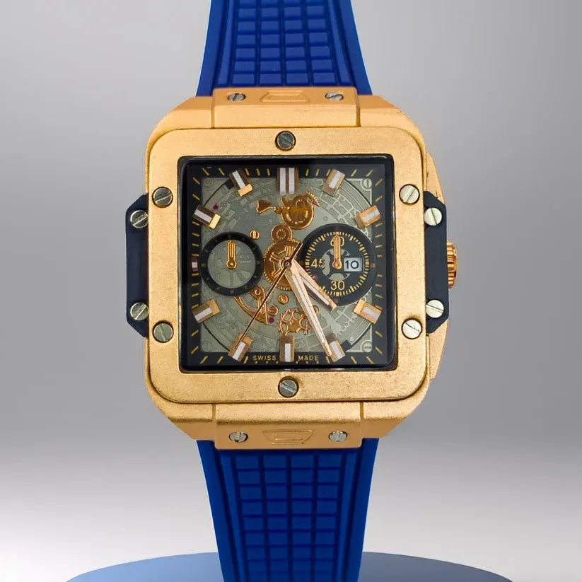 Square Dial Men Fashionable Chain Watch in Dual tone, Silver and Gold Color