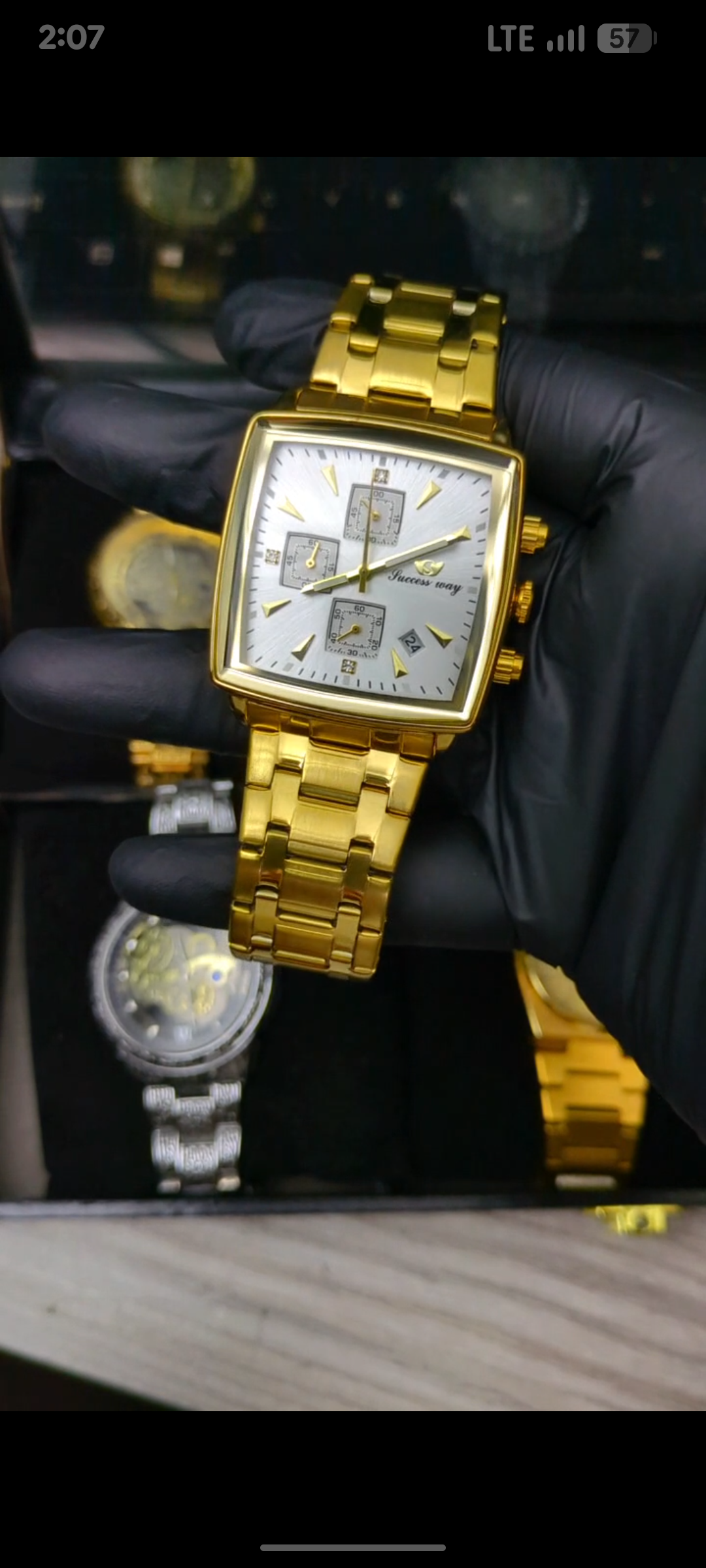 Elevate your style with our premium Luxury Gold Square Dial Watch – a statement piece designed for modern men who appreciate class and confidence. Featuring a bold square face, detailed chronograph subdials, and a durable stainless steel gold-toned bracelet, this timepiece merges timeless elegance with everyday functionality.