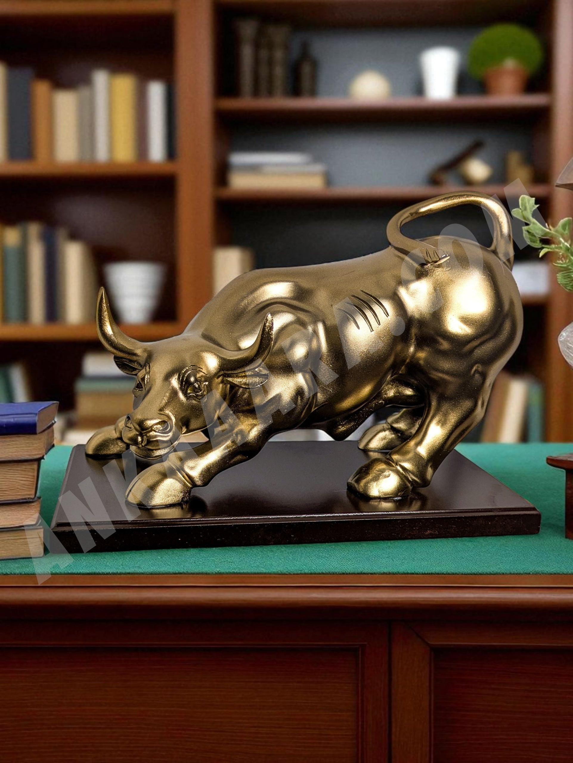 Elevate your office or living space with this stunning Golden Charging Bull Sculpture, a bold symbol of strength, determination, and financial prosperity. Crafted with intricate detail and finished in a premium metallic gold sheen, this resin statue is mounted on a sleek black base—perfect for desks, bookshelves, or executive tabletops. Ideal for entrepreneurs, investors, or anyone who appreciates elegant, motivational decor. A must-have piece for modern interiors, finance professionals, and gifting on success milestones.
