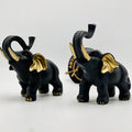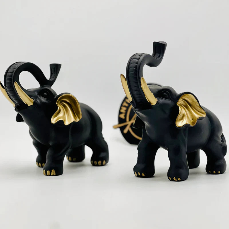 "This sleek resin elephant statue showcases a majestic black finish, highlighting the gentle giant's rugged texture and wise expression. Its intricate details and sturdy base make it a striking addition to any room, symbolizing strength, wisdom, and good fortune in a modern and sophisticated way."