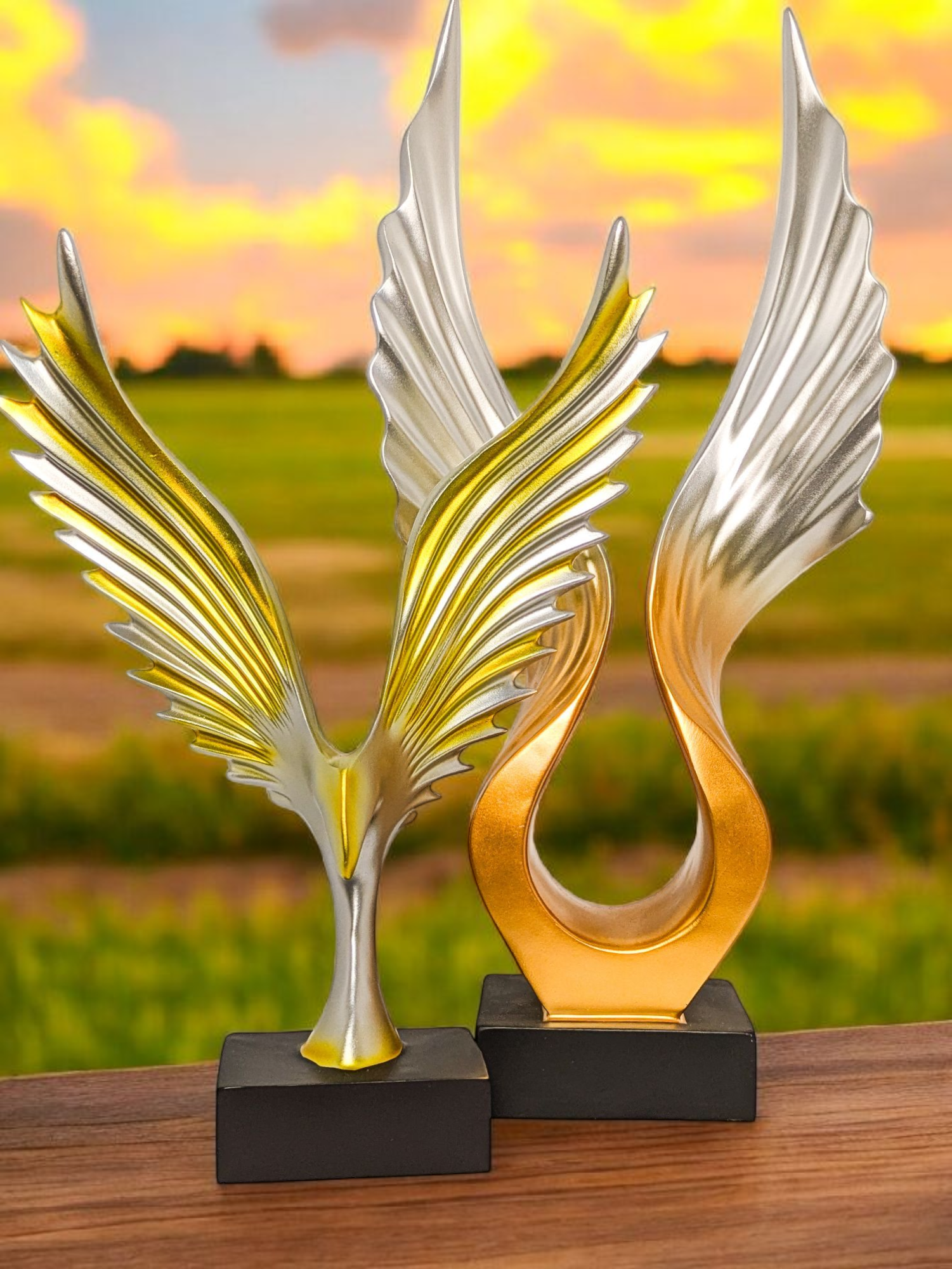Silver and Gold Angel Wings Sculpture Set of 2