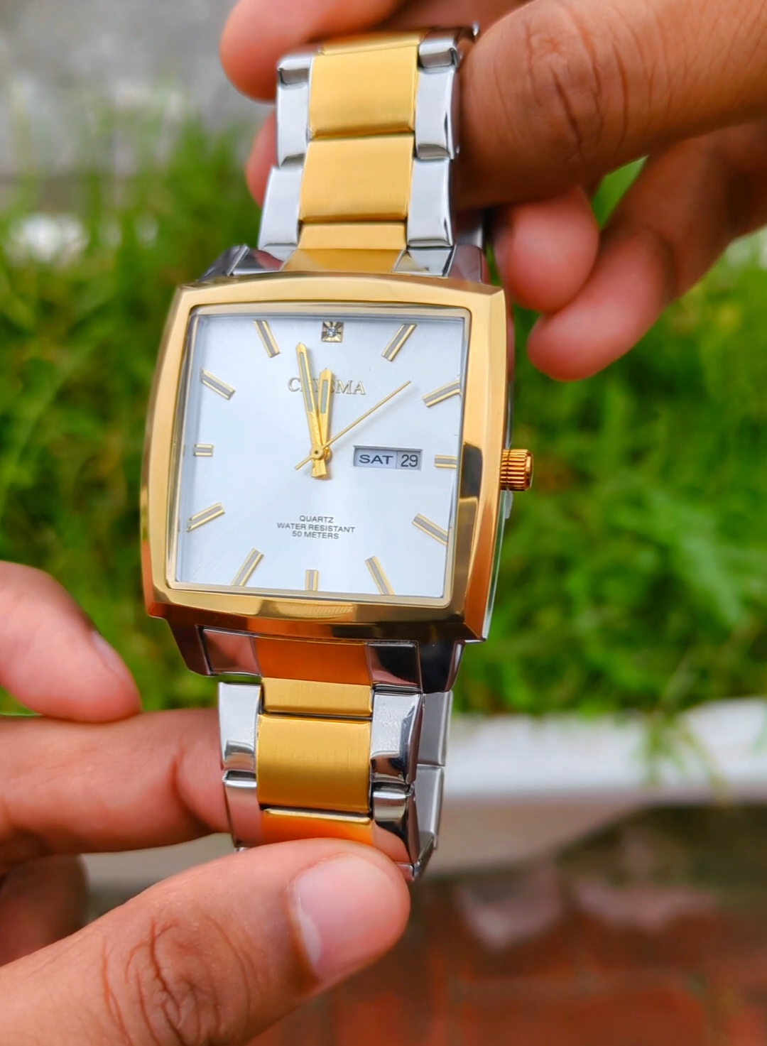 PREMIUM Square Dial Men Fashionable Chain Watch in DUAL TONE