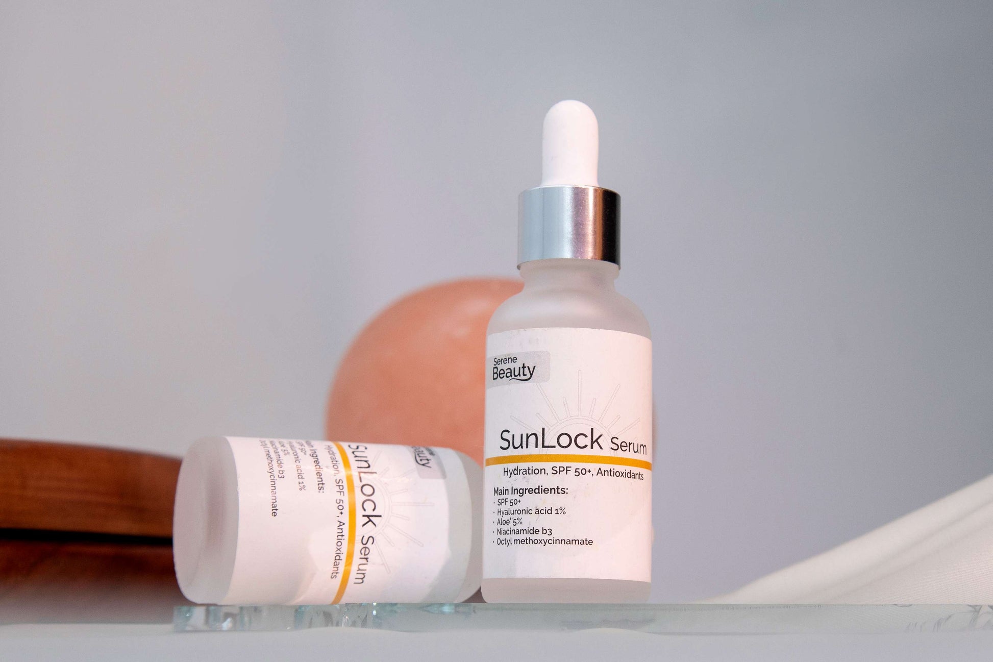 Introducing SunLock Serum — a powerful yet lightweight daily sun defense solution that does more than just shield your skin. Formulated with SPF 50+ and enriched with Hyaluronic Acid (1%), Aloe Vera (5%), Niacinamide, and Octyl Methoxycinnamate, this multi-benefit serum protects against harmful UV rays while deeply hydrating, soothing, and improving overall skin texture.